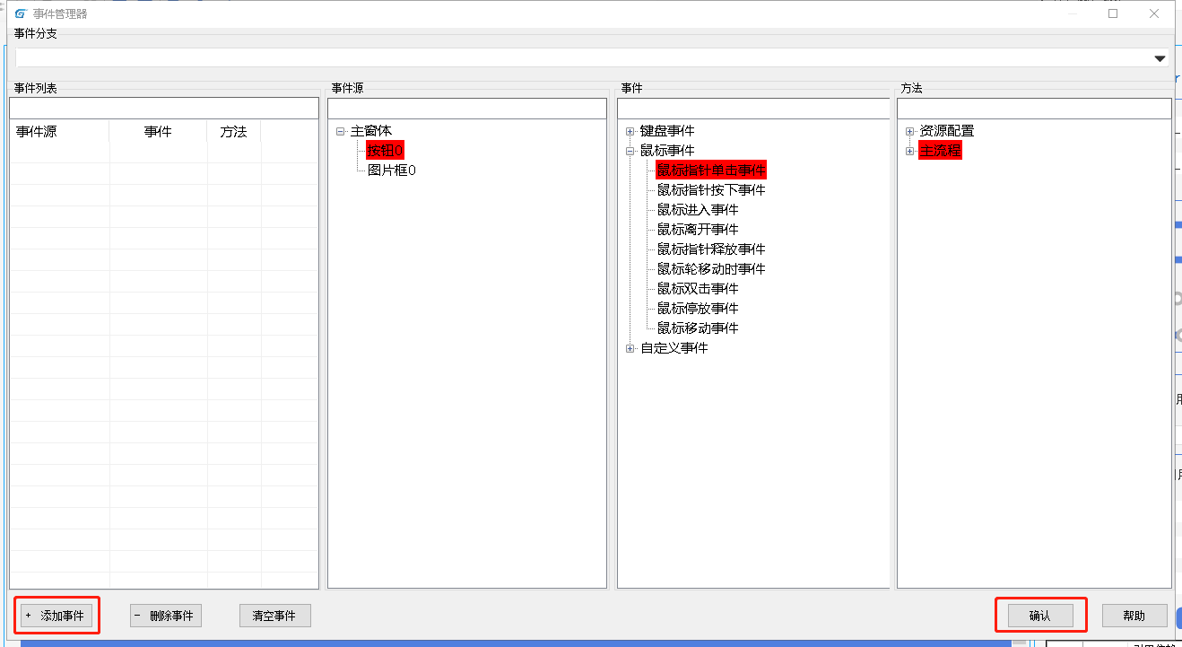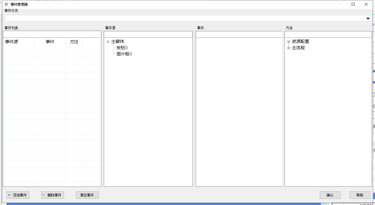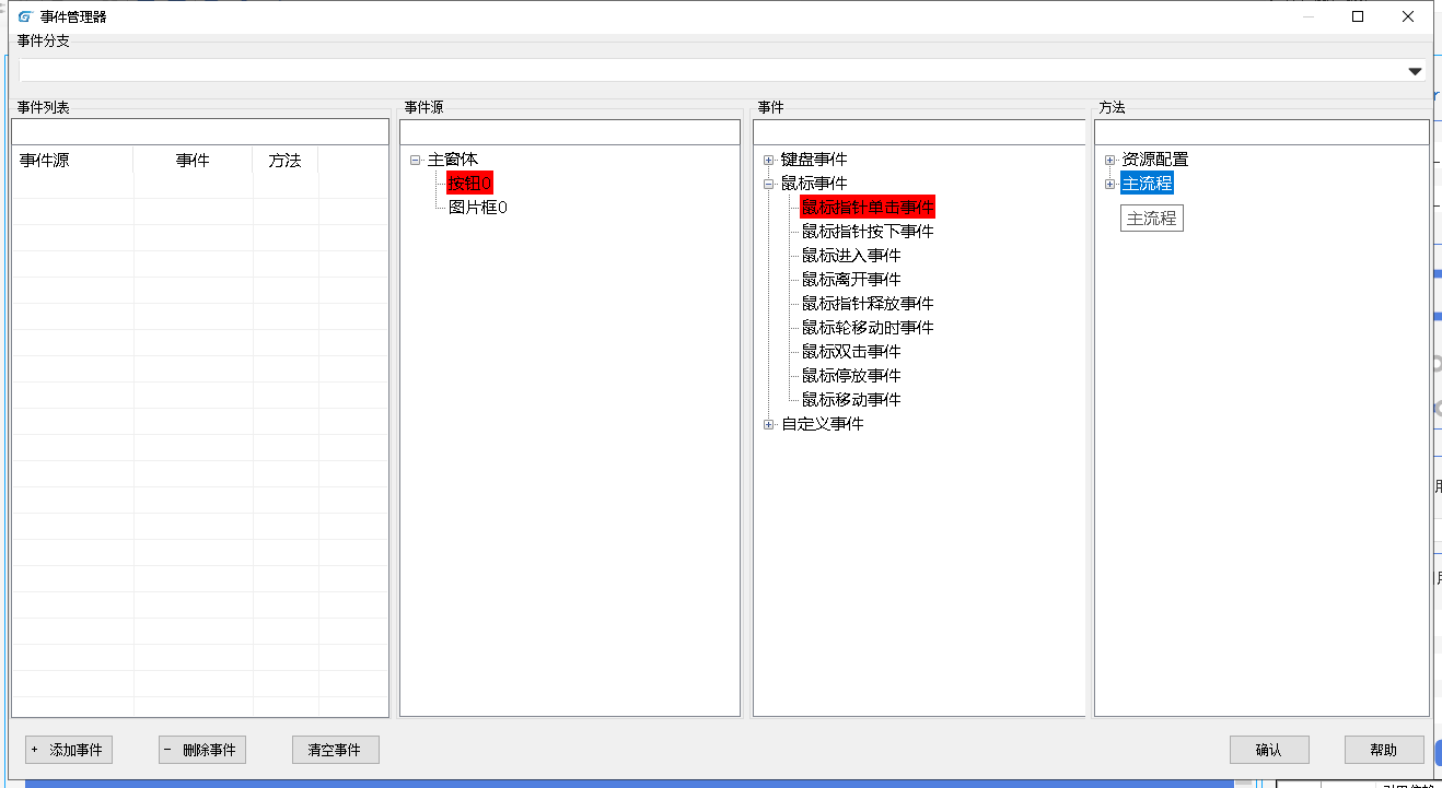 此时通过事件将HMI和主任务设计器流程完成关联,找到事件管理器按钮。